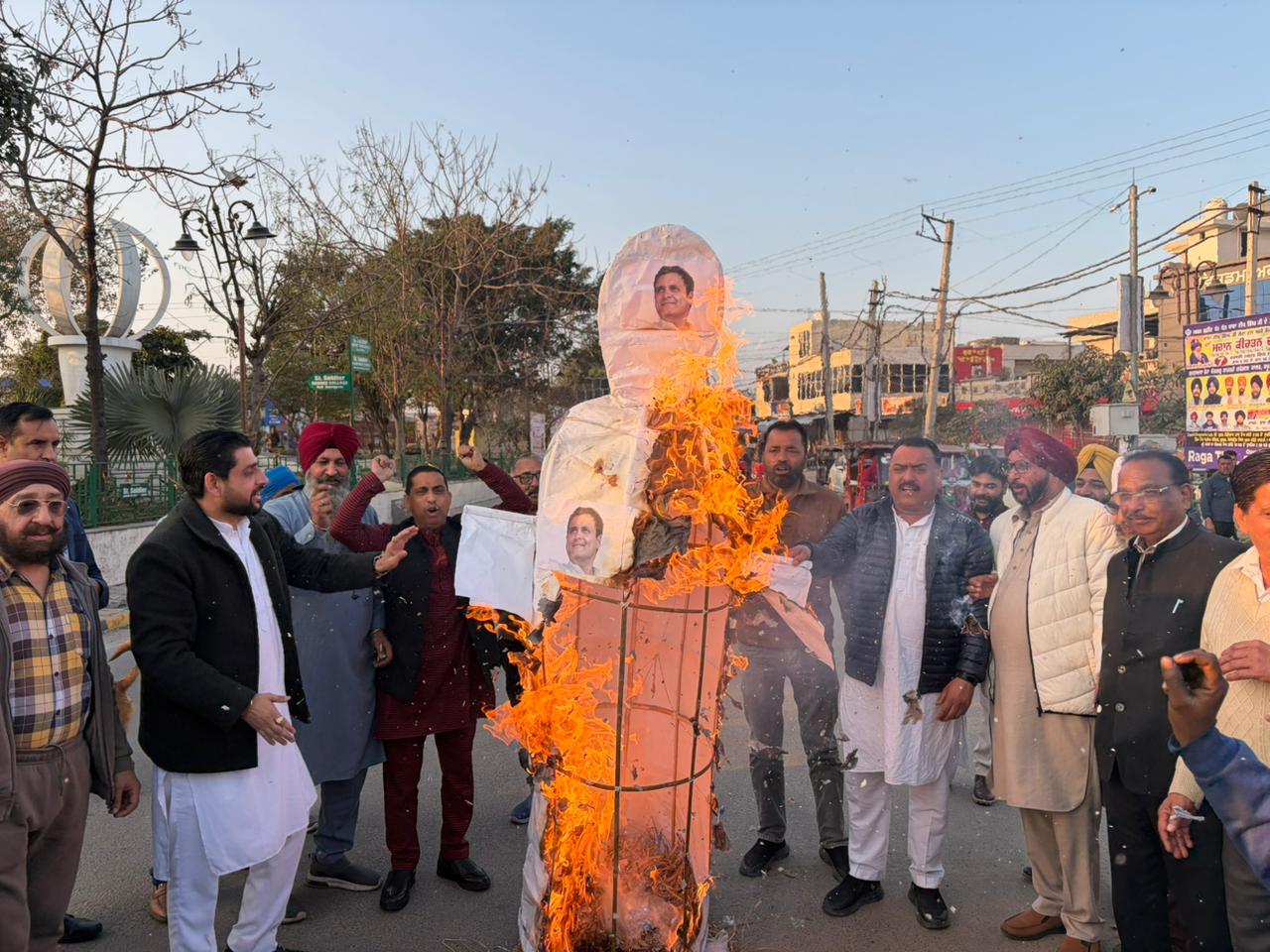 ਰਾਹੁਲ ਗਾਂਧੀ ਦੇ ਬੋਲਾਂ ’ਤੇ ਸੜਕਾਂ ’ਤੇ ਉਤਰੀ ਭਾਜਪਾ, ਟੀਟੂ ਦੀ ਅਗਵਾਈ ’ਚ ਪੁਤਲਾ ਫੂੰਕਿਆ