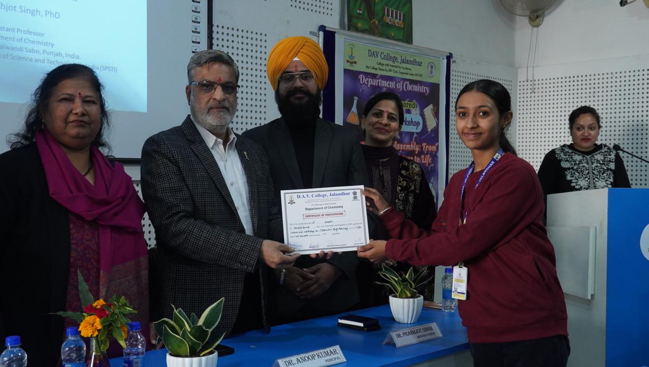 DBT-स्पॉन्सर्ड लेक्चर और वर्कशॉप “मॉलिक्यूलर सेल्फ-असेंबली: शेप और स्ट्रक्चर से जीवन तक” पर केमिस्ट्री डिपार्टमेंट ने सफलतापूर्वक ऑर्गनाइज़ किया। यह सेशन अकाल यूनिवर्सिटी, बठिंडा के डॉ. प्रभजोत सिंह ने दिया, जिन्होंने मॉलिक्यूलर सेल्फ-असेंबली के प्रिंसिपल्स और एप्लीकेशन्स के बारे में गहरी जानकारी दी। लेक्चर के दौरान, डॉ. सिंह ने मॉलिक्यूलर सेल्फ-असेंबली के फंडामेंटल प्रिंसिपल्स के बारे में पूरी जानकारी दी, और जीवन के लिए ज़रूरी कॉम्प्लेक्स, ऑर्डर्ड स्ट्रक्चर्स बनाने में इसकी अहम भूमिका पर ज़ोर दिया। उन्होंने बताया कि कैसे स्पॉन्टेनियस सुपरमॉलिक्यूलर असेंबलीज़ – जैसे सेल मेम्ब्रेन में लिपिड बाइलेयर्स – सिंपल मॉलिक्यूलर इंटरैक्शन से बनती हैं और प्रीबायोटिक इवोल्यूशन में सेल्फ-असेंबली के महत्व पर ज़ोर दिया, जहाँ इसने शुरुआती बायोलॉजिकल कंपाउंड्स के बनने में मदद की होगी। लेक्चर में सेल्फ-असेंबल हाइड्रोजेल, MOF ट्यूब्यूल, न्यूरोडीजेनेरेटिव डिसऑर्डर, कॉन्टैक्ट लेंस और घाव भरने वाले मटीरियल जैसे दिलचस्प टॉपिक पर लेटेस्ट रिसर्च पर ज़ोर दिया गया। इस बातचीत में फंडामेंटल केमिस्ट्री को असल दुनिया के बायोमेडिकल एप्लीकेशन से अच्छे से जोड़ा गया। फैकल्टी मेंबर और स्टूडेंट्स ने एक्टिवली हिस्सा लिया और रिसोर्स पर्सन से बातचीत की। इस इवेंट ने एकेडमिक माहौल को बेहतर बनाया और इंटरडिसिप्लिनरी लर्निंग और रिसर्च अवेयरनेस को बढ़ावा दिया।